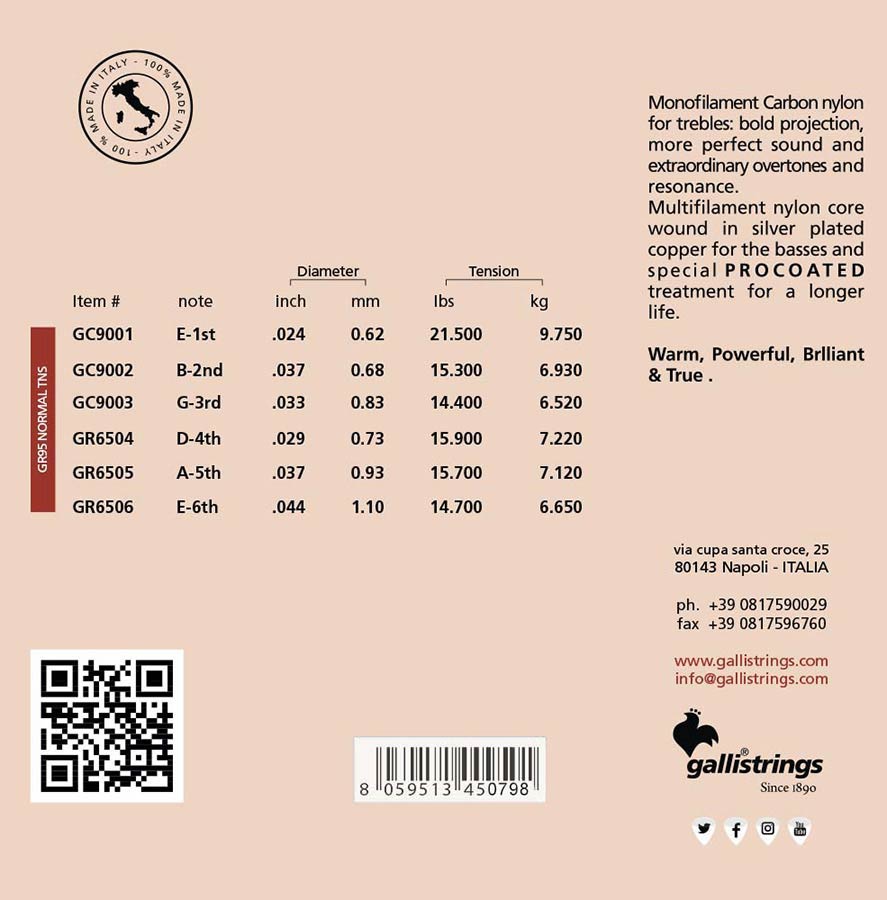 Carbon nylon for the trebles: bold projection, perfect sound and extraordinary overtones and resonance. Silver plated copper for the basses and the special ProCoated treatment for a longer life.