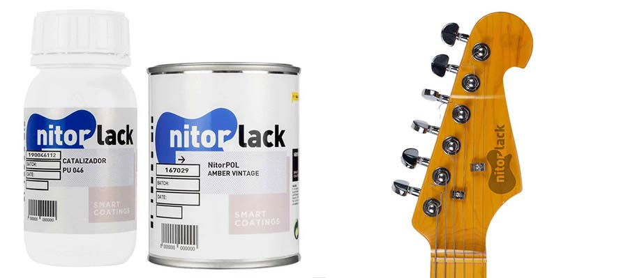 Vintage amber tint finish, available in gloss or matte. You can achieve the vintage tone of aged maple necks by applying thin layers until the desired intensity is achieved.