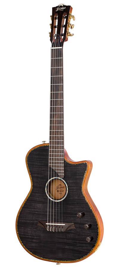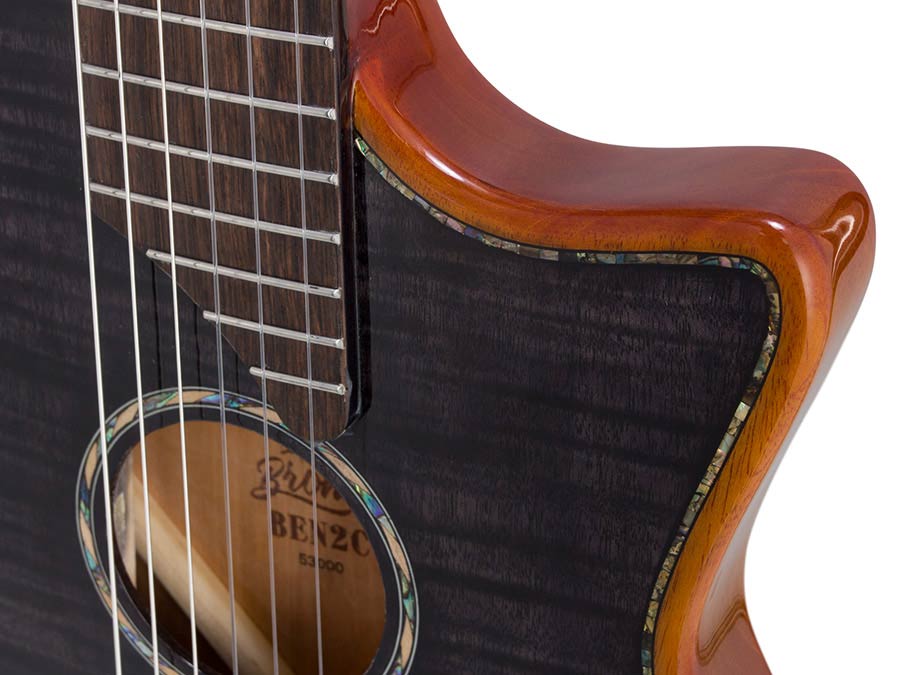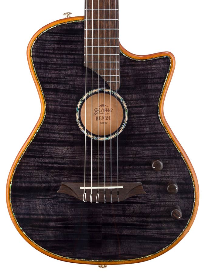 The Bromo BEN2C Fusion Craft Series electric nylon string guitar blends classical tone with modern innovation. Ideal for both fingerstyle and strumming, it fuses nylon strings with a sleek, ultra-thin 42mm (1.65”) body featuring a cutaway, ergonomic belly contour, and smoothly radiused body edge, along with a C-profile, slim 48mm (1-7/8”) neck paired with an innovative Comfy Nut and a 400mm (15.75”) fretboard radius. This design delivers unparalleled playability for classical guitarists - something traditional classical guitars can't match - while also offering instant familiarity for acoustic and electric players crossing over.