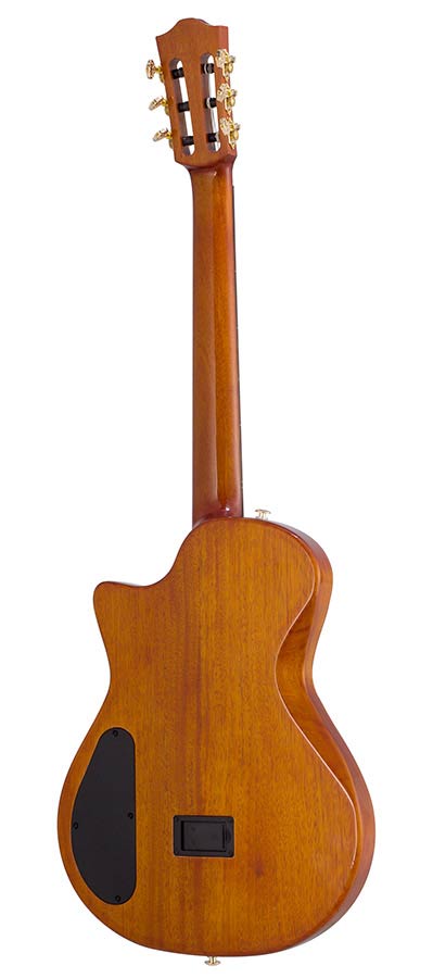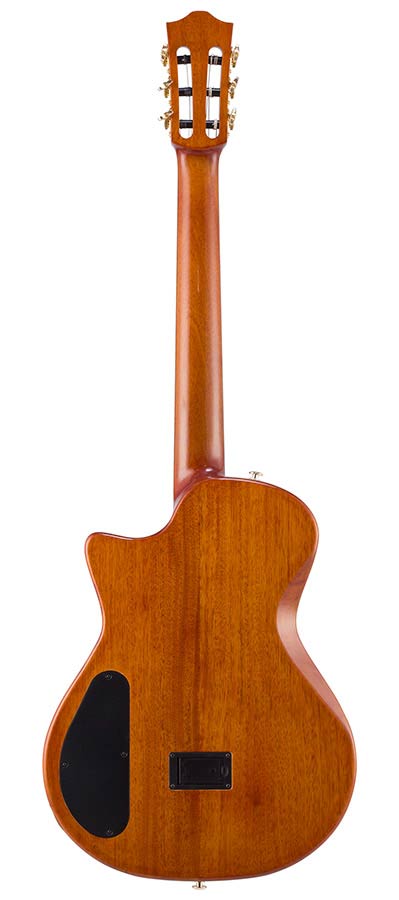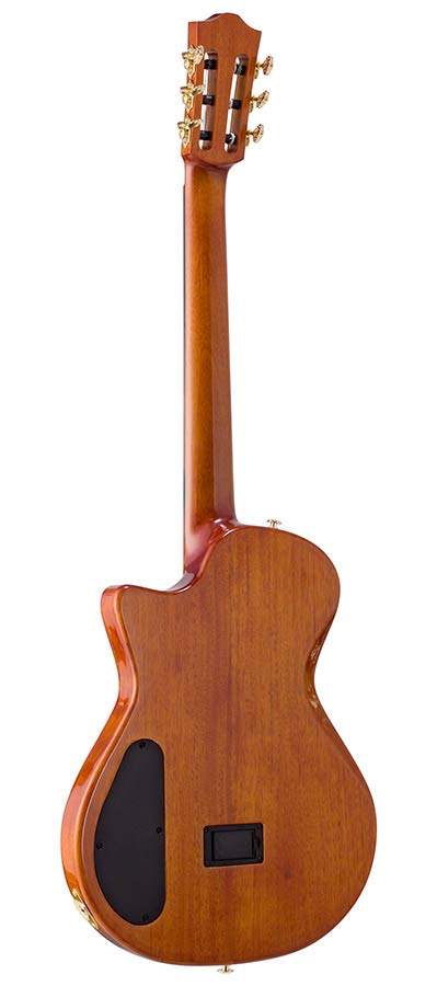 ?With a solid spruce top veneered with 5A-grade flame okoume, a fully chambered mahogany body, and an innovative sculpted bracing system, it delivers a sound that is rich and resonant enough for home practice, while minimizing feedback on stage. Combined with the guitar’s hybrid pickup system - an under-saddle piezo pickup and a 3-head under-bridge transducer featuring versatile sound options – this guitar is a top pick for performing artists.