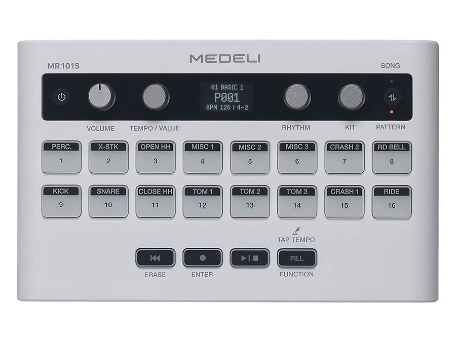 Das Medeli MR101S ist ein schnörkelloses, tragbares Schlagzeug für Solokünstler, die ihre Live-Sets mit Drumbeats aufpeppen möchten, und für Musiker, die eine Pause vom Üben mit einem traditionellen Metronom brauchen.