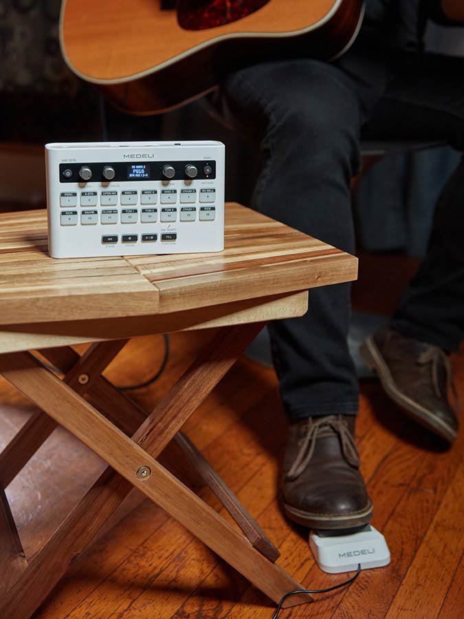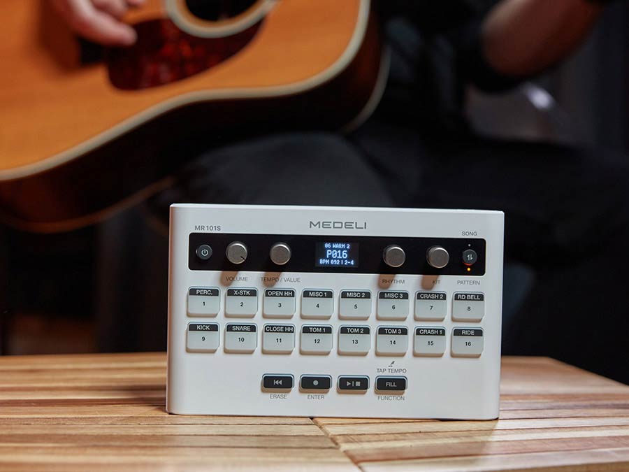 Das kompakte und leichte MR101S unterstützt Batteriebetrieb (oder Stromversorgung über USB-C) und bietet Ihnen die Flexibilität, Ihren persönlichen Schlagzeuger überallhin mitzunehmen, wo Sie Musik machen möchten.
