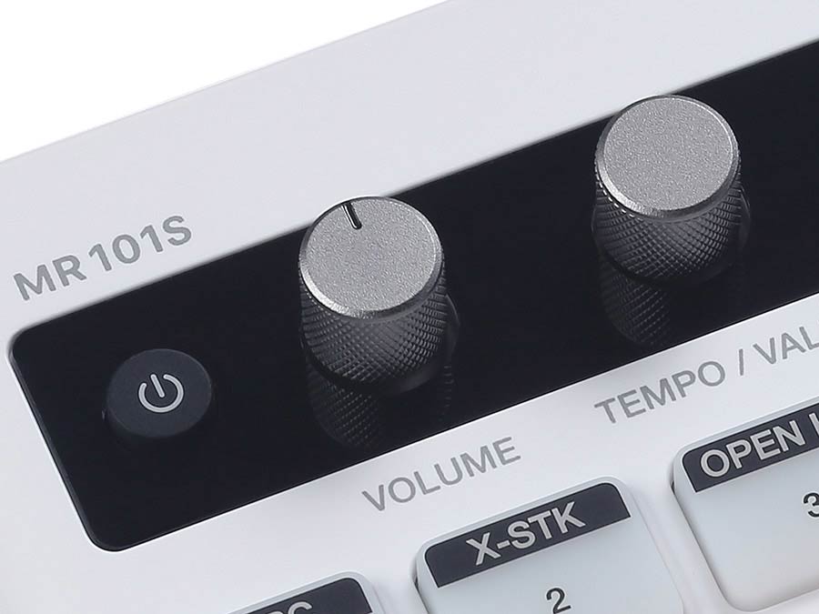 48 Drumkits und 100 voreingestellte Schlagzeugmuster decken eine riesige Bandbreite an Musikgenres ab. Außerdem können Sie bis zu 100 Ihrer eigenen Patterns aufnehmen und speichern, wodurch die Möglichkeiten des MR101S nahezu grenzenlos werden.