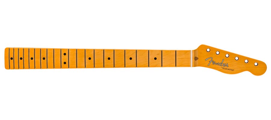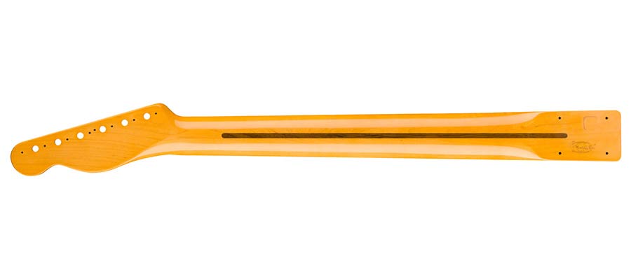 The bone nut is pre-slotted with "pilot" string location grooves to make spacing a breeze when performing the final string slot filing and a lacquer finish offers a vintage feel. This replacement neck is the perfect way to give your Tele® an authentically '50s feel.
