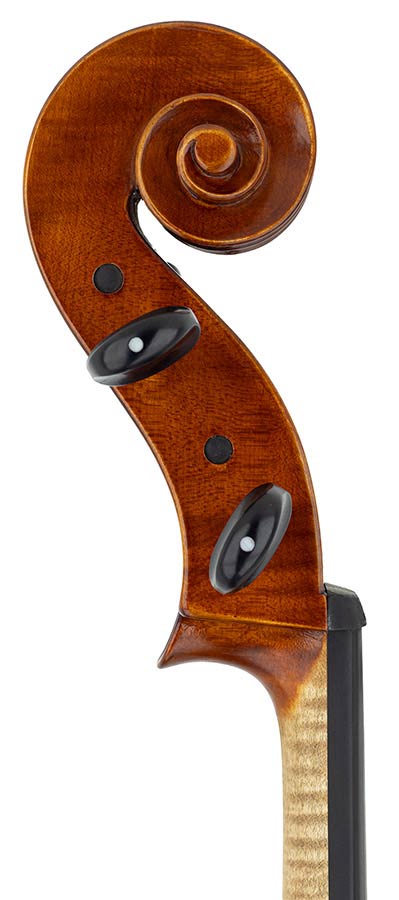 Special attention is given to the graduation of the top and back plates, allowing for optimal tonal balance and responsiveness. The instrument is delivered without setup, and comes fitted with high-quality Teller ebony pegs.