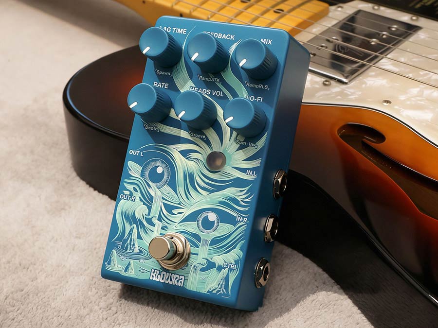 Klowra Rilum is a multi-head delay and modulation pedal inspired by classic multi-track tape echo machines. It delivers authentic vintage multi-head delay textures, lets you explore tape-like flanging and chorus tones born from analog friction, and creates warm, atmospheric trails with rich spatial depth. The sound evolves through layers of feedback, eventually reaching unpredictable self-oscillation.