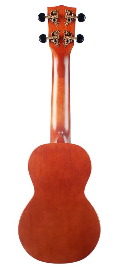 Ukulele mit Gitarren-Mechaniken, Aquila Saiten, Nubone Sattel, inkl. Tasche, transparent braun