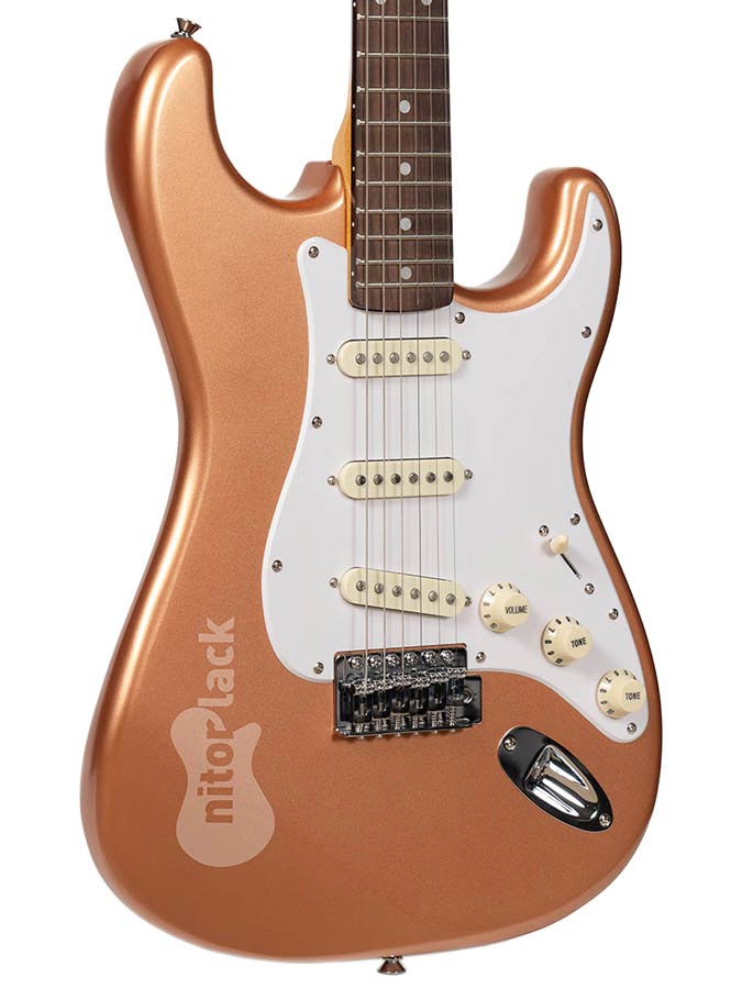 This finish is a single component acrylic paint. It allows to apply the colour in a very even way, giving a spectacular metallic appearance. It’s important to finish the applied coat with a clear polyurethane or nitrocellulose finish over it, to protect the plating and add depth.