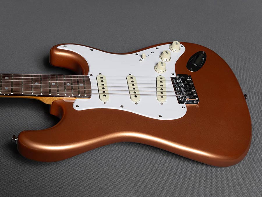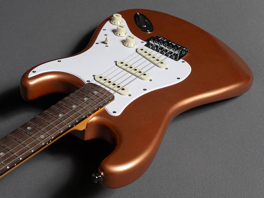 This Copper Metallic colour was rarely used by Fender through the fifties: it appeared for the first time on the ’52 Esquire and Telecaster. When the custom colours were standardised in 1960 the copper finish was eliminated from the chart.