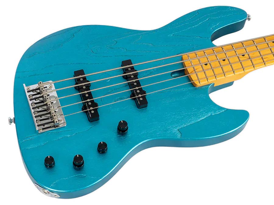 mahogany+ash top 5-string active bass guitar ocean turqoise blue