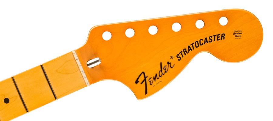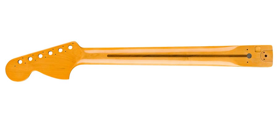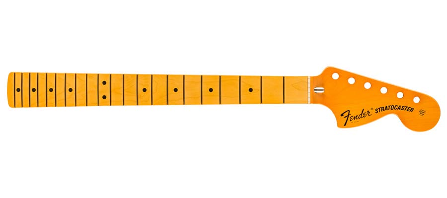 The bone nut is pre-slotted with "pilot" string location grooves to make spacing a breeze when performing the final string slot filing and a gloss polyurethane finish offers a vintage feel. This replacement neck is the perfect way to give your Strat® an authentically '70s feel.