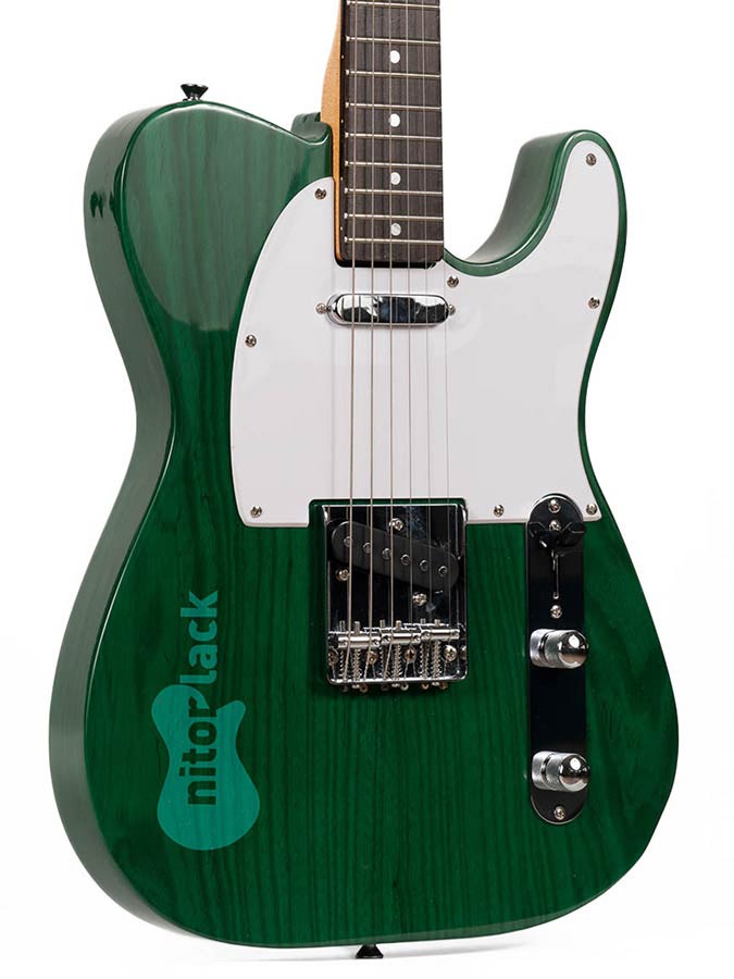 NitorTINT dyes for guitars are specially designed to change the colour of the wood with maximum transparency without altering the mesh of the natural wood. They are concentrated dyes with a double utility: they can either be diluted with a solvent to apply directly to the wood with a solvent or spray gun, or they can be used to colour the finishing varnish. They are universal stains that can be diluted in solvent, water or alcohol. In the case of application with a squeegee it is recommended to use water or Nitorlack Retard solvent. NitorTINT dyes are recommended to be diluted in a proportion between 3% and 10% depending on the type of application.