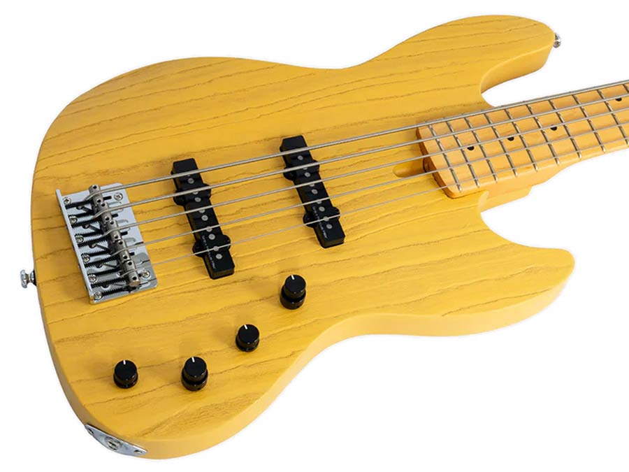mahogany+ash top 5-string active bass guitar butterscotch blonde