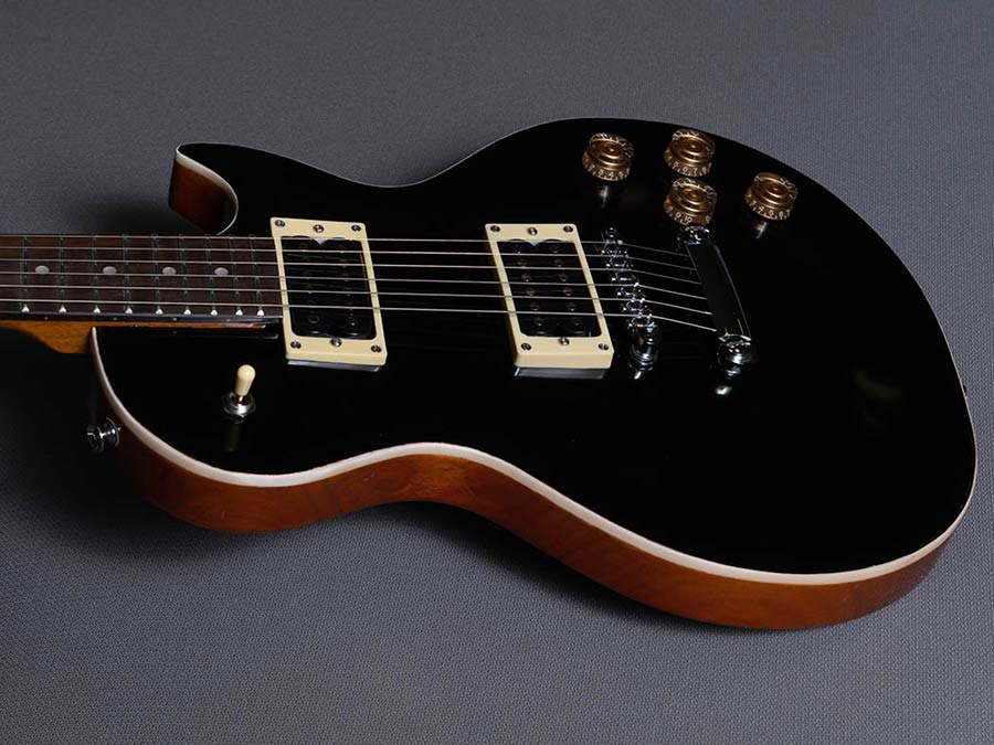 This is a high intensity black nitrocellulose lacquer finish, based on the lacquer as used by Gibson. Used mainly in models like the Les Paul Custom “Black Beauty”, this deep black shade combined with gold hardware brings a unique elegance to the guitar.