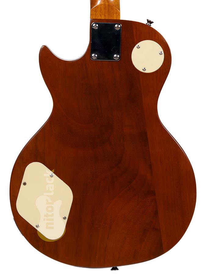 If you’d like to paint your guitar a perfect finish and you have painting equipment (spray gun and compressor) available, the best choice is nitrocellulose varnish in a can. You’ll get a higher performance by a lower price and with painting equipment the final result will be professional with less effort. It is recommended to dilute the product with our solvent to adjust the viscosity. For the application to be perfect we have two types of solvents: the usual solvent used is Solvent Medium (art. nr. 48138 / N540423104), but for ambient conditions of humidity and temperature more extreme we can use Solvent Retard (art. nr. 48139 / N540425104) to avoid bubbling and blooming in the finish.