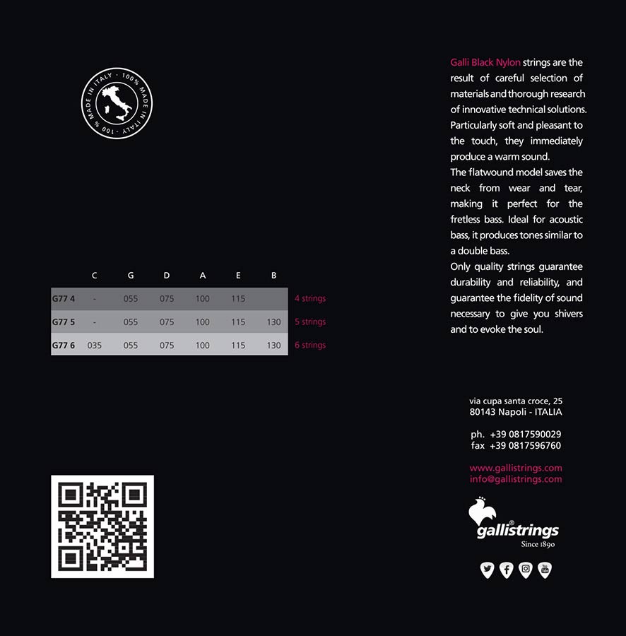 G-77-5 |Galli Black Nylon string set acoustic 5-string bass tape wound
