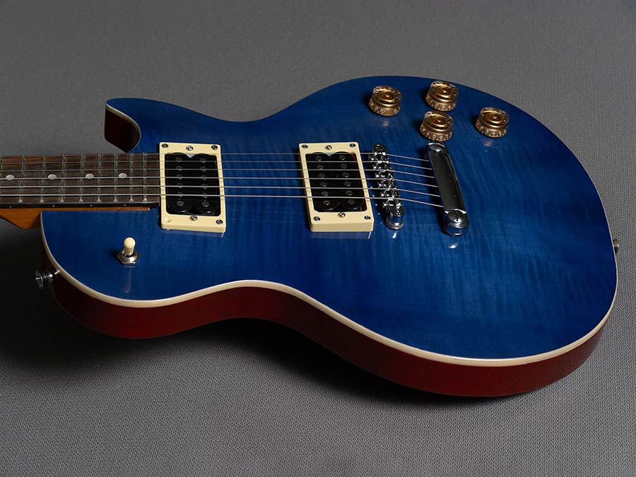 The semi-translucent blue finish reveals the grain of the wood. It's great for use with figured or flamed maple tops as used on the Gibson Les Paul. You can highlight the grain or flamed top of your guitar by applying a black dye or filler and then sand it down to leave marked only the grain. To reach the translucent effect you are looking for, the secret lies in the application of thin even layers until the hue and desired woodgrain are to your satisfaction.