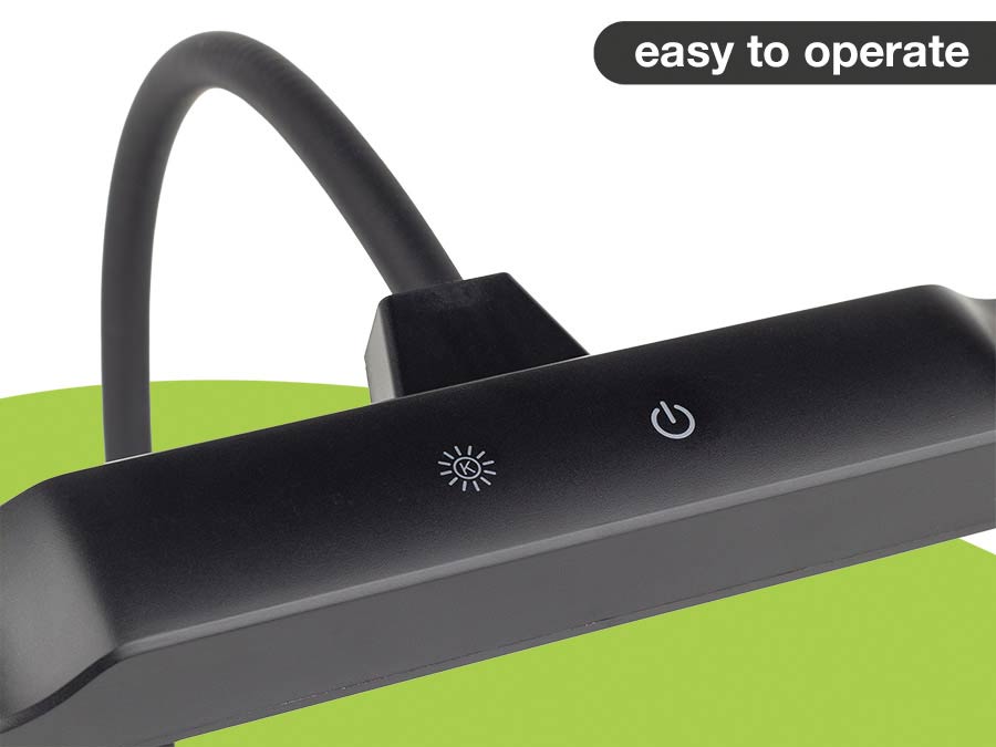 The flexible, silicone-coated 380 mm gooseneck makes it easy to position the light exactly where needed, for both piano and organ use. The integrated memory function recalls the last-used settings, so the lamp is ready to use immediately when switched on. An additional USB port allows convenient charging of a smartphone or other device during practice or performance.