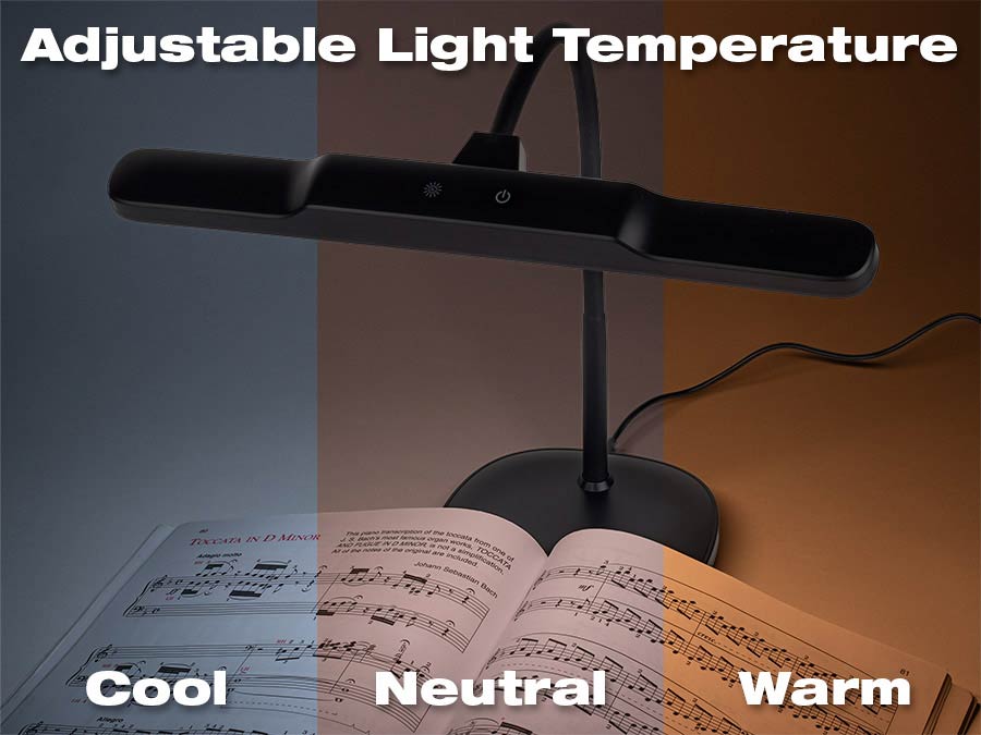 The robust ABS housing with a black finish gives the lamp a clean, professional appearance that suits both acoustic and digital pianos as well as organs. The included 5V / 3A power adapter makes the lamp fully plug-and-play.
