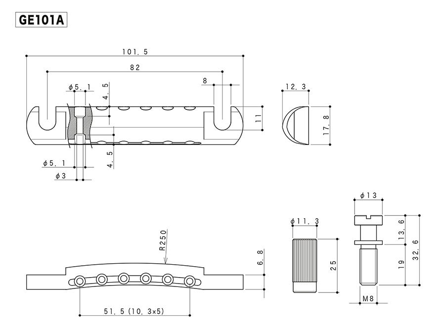 The Gotoh GE101A is the classic tailpiece design for anchoring the strings of your Tune-o-matic bridge equipped guitars. Made from lightweight aluminium like the original Gibsons, it features height adjustable metric posts, spaced 82 mm apart (standard Gibson spacing) that screw securely into metal body anchors.