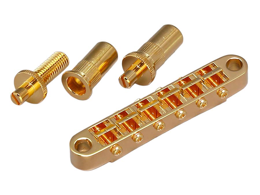 GE103B-T guitar bridge tune-o-matic, 14mm saddle travel, modern posts, gold