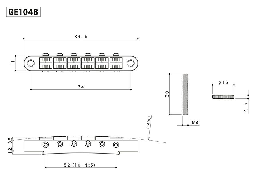 GTH12647 |Gotoh GE104B guitar bridge tune-o-matic