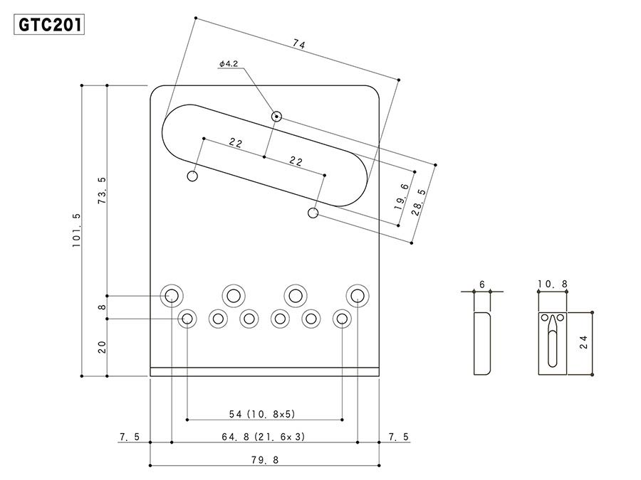 GTC202 guitar bridge with pickup frame, pitch 10.8mm, chrome