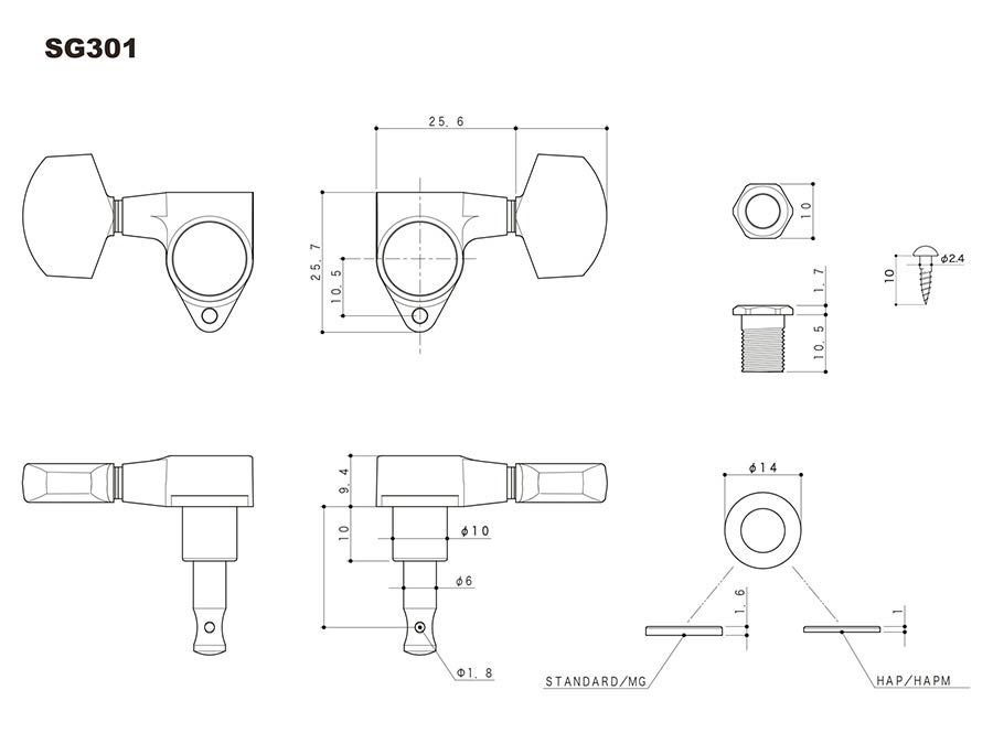 SG301 machine heads with Magnum Lock Trad and 04 buttons, 3L3R, gold
