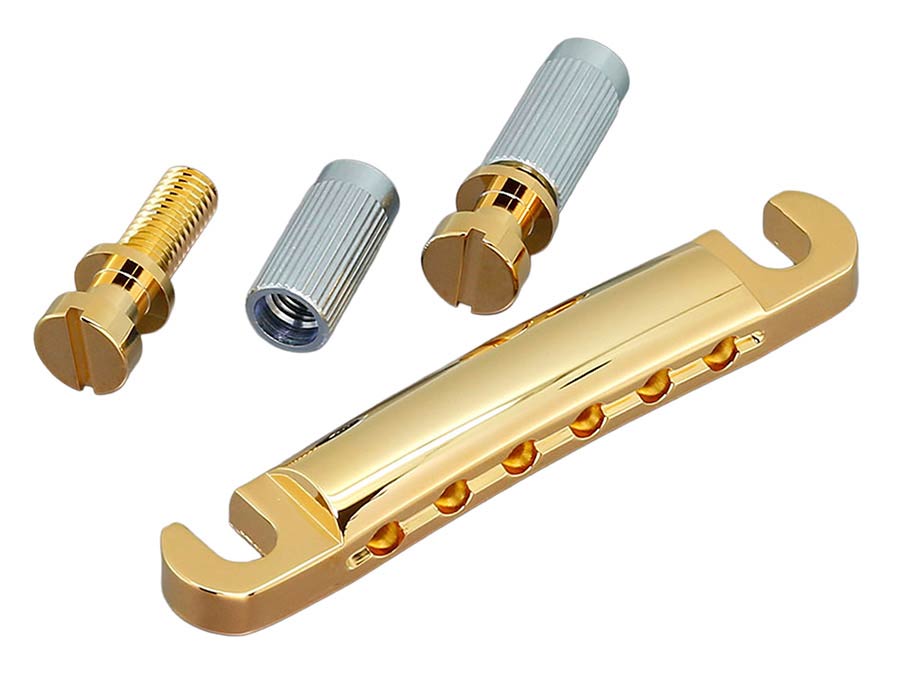 GE101Z zinc guitar tailpiece with metric studs M8 (vintage shape), gold