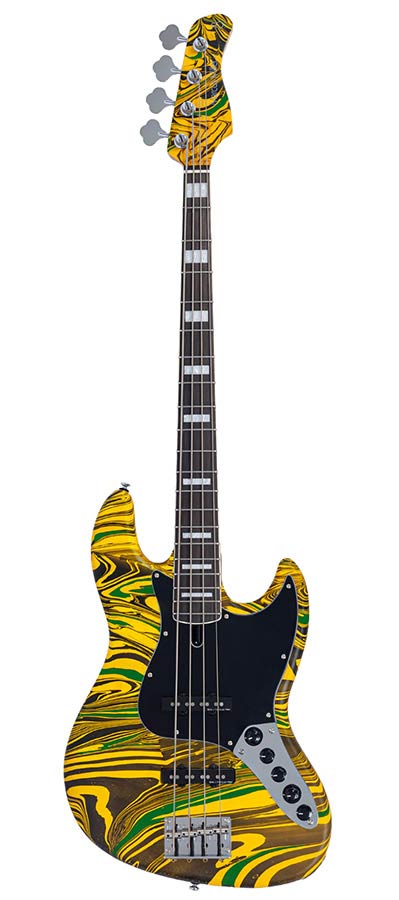 alder 4-string active bass guitar yellow swirl