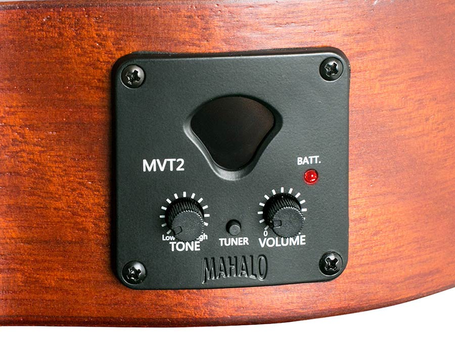 Electric Acoustic models are equipped with a stage-ready under-saddle pickup and Mahalo MVT2 on-board preamp system with a built-in LCD tuner for great amplified performance (selected models only).