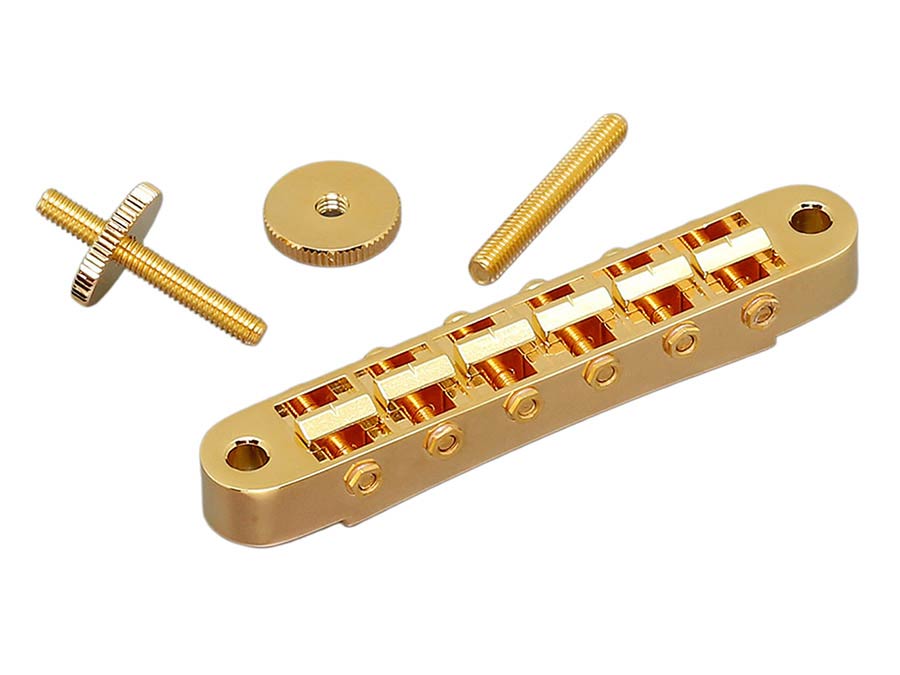 GE103B guitar bridge tune-o-matic, 14mm saddle travel, vintage posts, gold