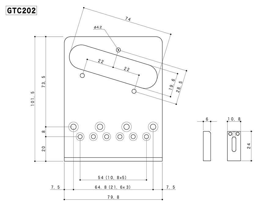 GTC202 guitar bridge with pickup frame, pitch 10.8mm, black