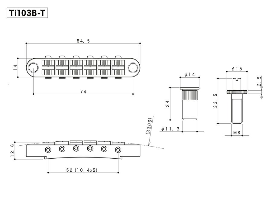 Ti103B-T guitar bridge with titanium saddles, chrome