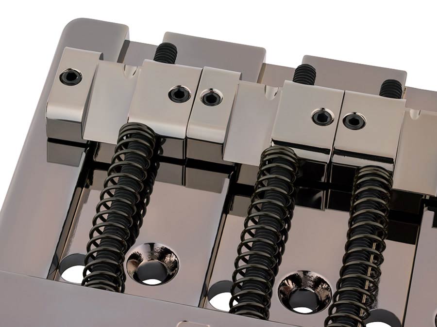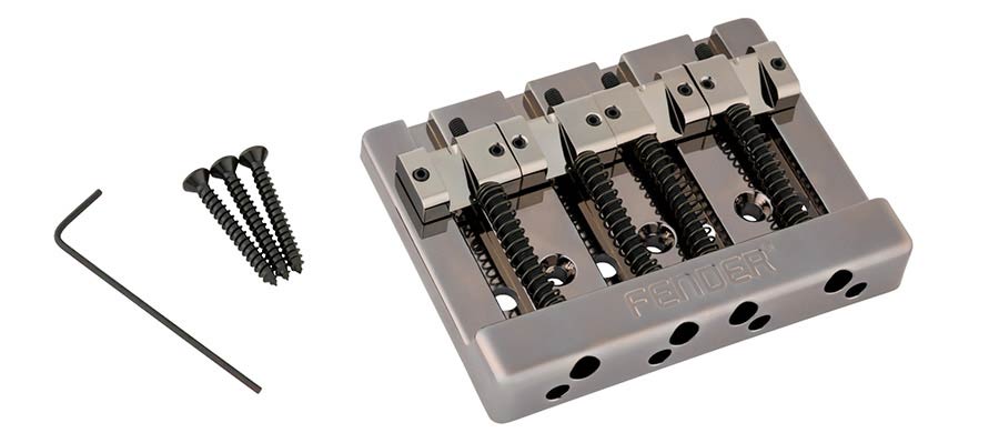 Introduced on the American Ultra II bass guitars, the precision manufactured HiMass™ bridge allows string-through or top-load operation for greater versatility with endless sustain, precise attack and rock-solid tuning stability. The brass baseplate and machined saddles impart warm, authentic vintage-style tone with .775" string spacing for a familiar playing feel. Precision engineered as a direct drop-in replacement for modern-style Fender models: this bridge mounts via three screws.