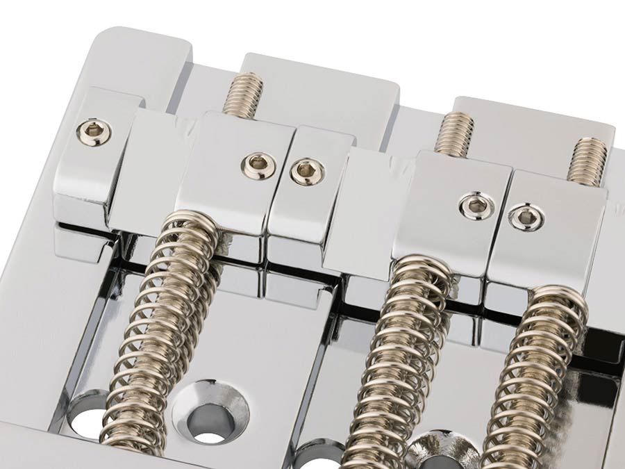Introduced on the American Ultra II bass guitars, the precision manufactured HiMass™ bridge allows string-through or top-load operation for greater versatility with endless sustain, precise attack and rock-solid tuning stability. The brass baseplate and machined saddles impart warm, authentic vintage-style tone with .775" string spacing for a familiar playing feel. Precision engineered as a direct drop-in replacement for modern-style Fender models: this bridge mounts via three screws.