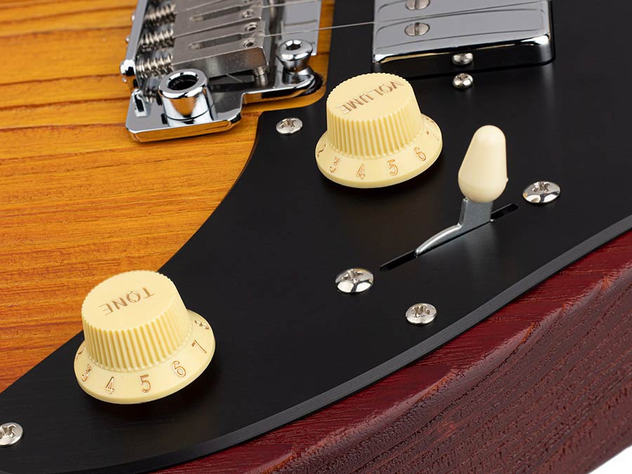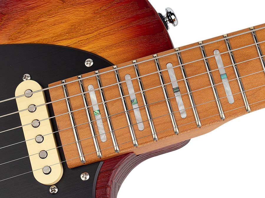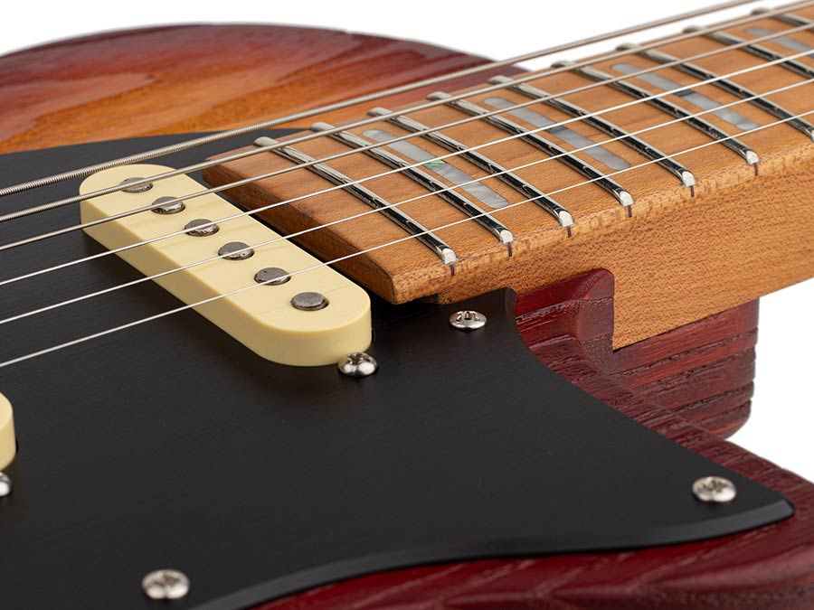 A redesigned single-cut body made of sandblasted Swamp Ash, a wood material historically known to produce natural sound, combined with the Edgeless™ roasted Maple neck for more fun plays.