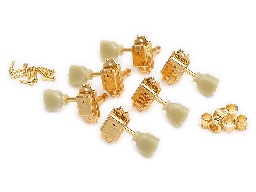 machine heads for guitar "Double Line", 3x left+3x right with tulip buttons, gold