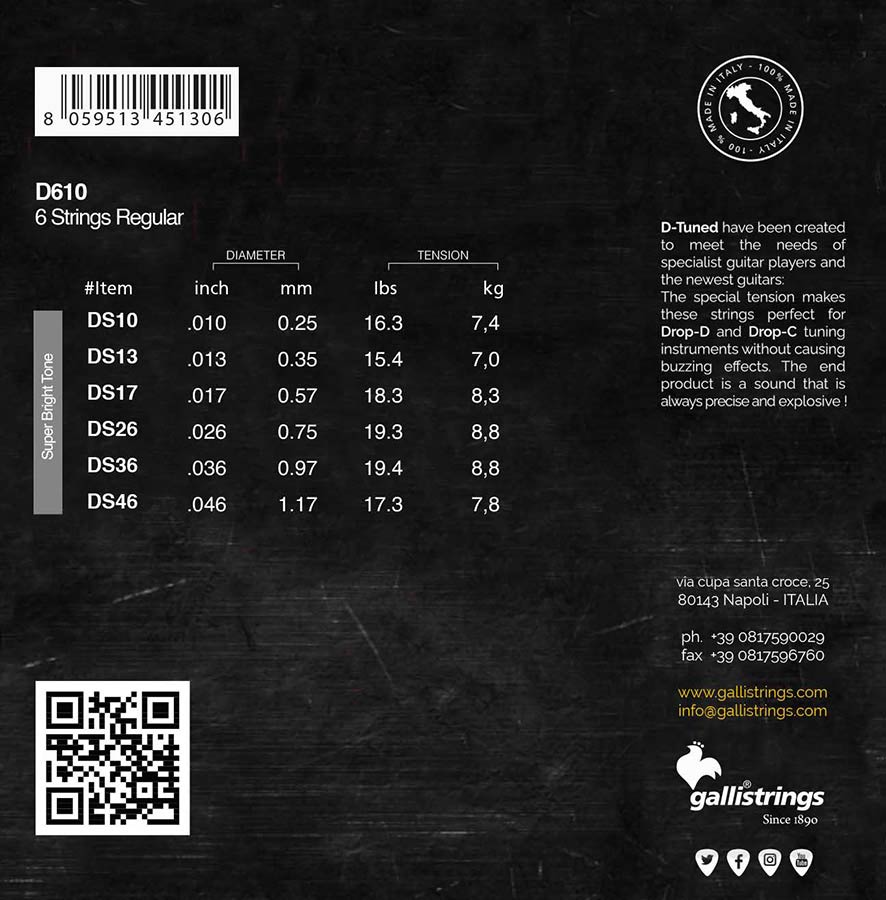 D-Tuned have been created to meet the needs of specialist guitar players and the newest guitars: The special tension makes these strings perfect for Drop-D and Drop-C tuning instruments without causing buzzing effects. The end product is a sound that is always precise and explosive!