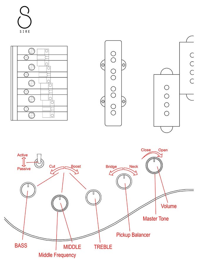 | controls | volume / tone (dual pot) pickup blender treble middle / middle frequency (dual pot) bass mini toggle (active / passive) |