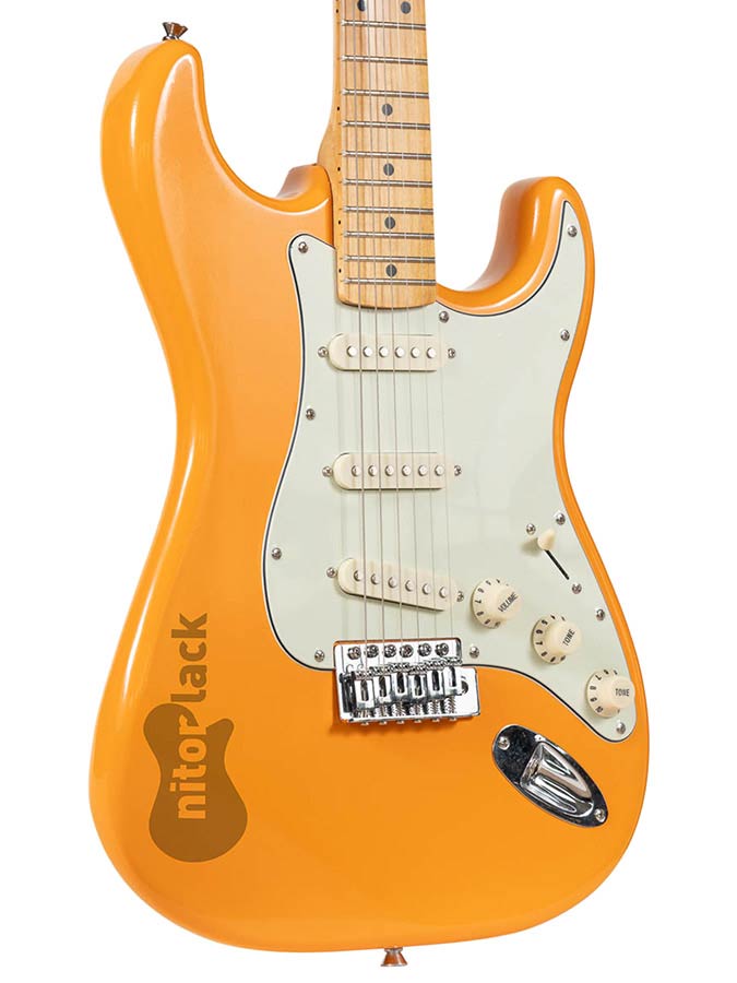 The Orange Capri color is based on the Ford colour chart of the 70’s specifically for the Ford Capri car. Obviously this colour does not go unnoticed. Combined with a rosewood or maple neck it's very elegant.