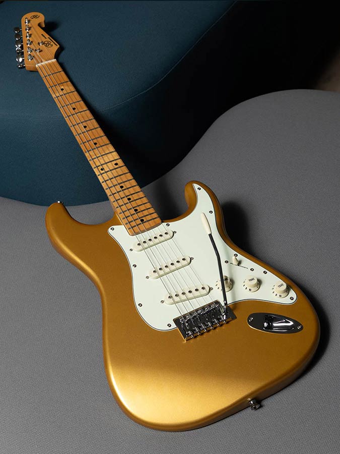 This colour provides a refined look with a softer gold tone compared to brighter metallics, giving instruments a unique and vintage-inspired character.