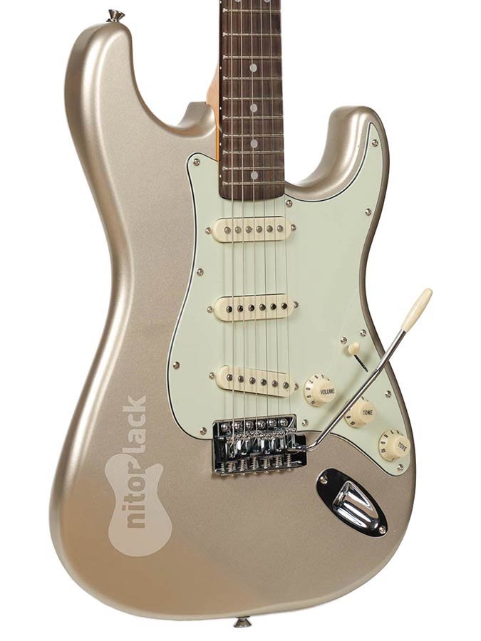 At NitorLACK we have developed all our guitar colours in spray format nitrocellulose so you don’t need professional painting equipment to paint your guitar. You can achieve a professional finish with our entire range of products, from coloured base coats from our entire range up to nitrocellulose top coat lacquers in gloss and matte.