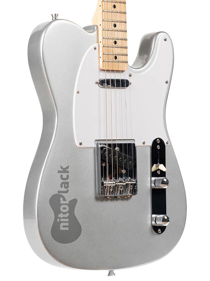 If you’d like to paint your guitar a perfect finish and you have painting equipment (spray gun and compressor) available, the best choice is nitrocellulose varnish in a can. You’ll get a higher performance by a lower price and with painting equipment the final result will be professional with less effort. It is recommended to dilute the product with our solvent to adjust the viscosity. For the application to be perfect we have two types of solvents: the usual solvent used is Solvent Medium (art. nr. 48138 / N540423104), but for ambient conditions of humidity and temperature more extreme we can use Solvent Retard (art. nr. 48139 / N540425104) to avoid bubbling and blooming in the finish.