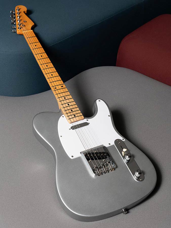 Inspired by the finish of the Chevy Corvette car from the late ‘50s, Fender starting using this colour named as ‘Inca Silver’ as a custom colour option. It was used from 1960 to 1965, when Fender changed their silver custom colour option to Firemist Silver. Fender also used it as the undercoat for Candy Apple Red until Fender switched to a gold undercoat late 1965.